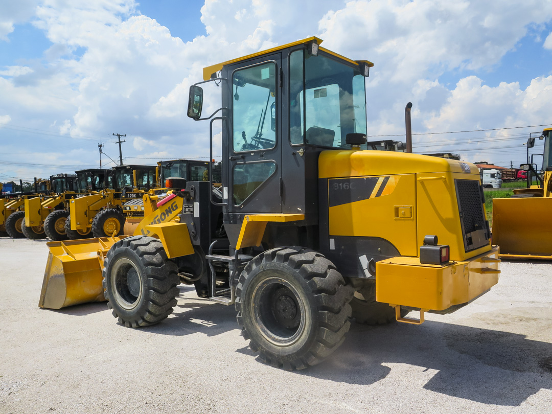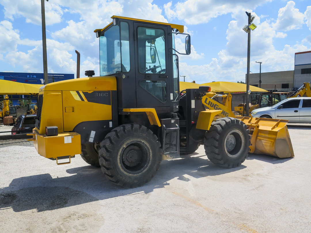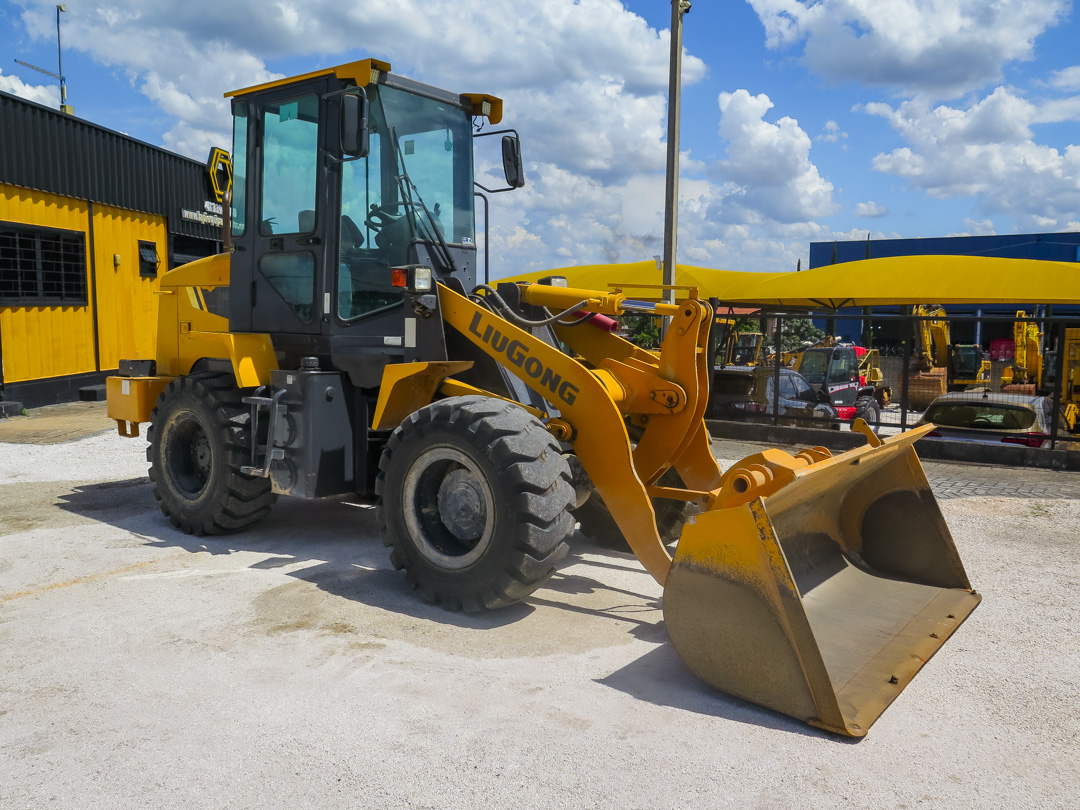 Pá carregadeira Liugong 816C ano 2019 com 5.500 horas de operação. Equipamento de 5.500kg com motor 4 cilindros de 65cv equipado com concha e pallet em excelente estado.
