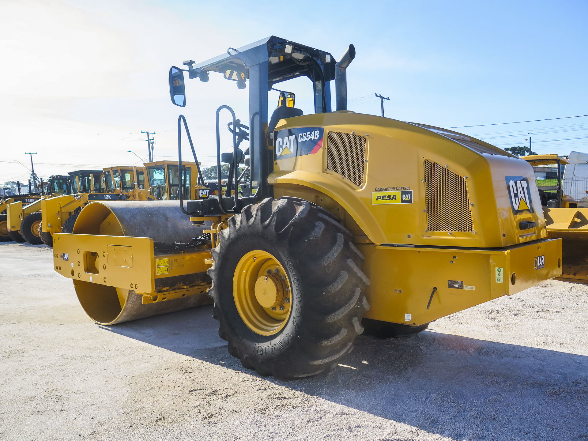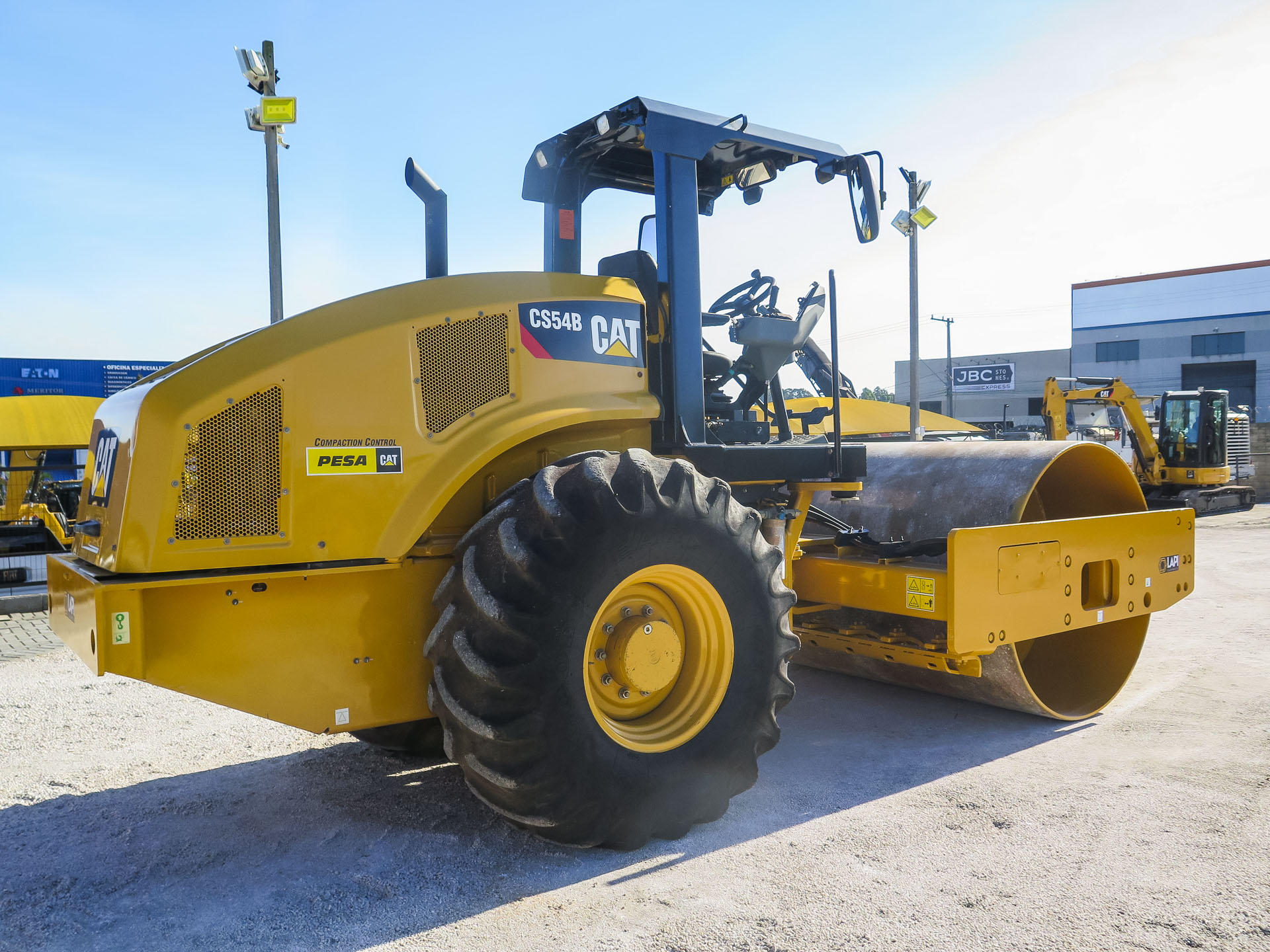 Rolo Compactador CS54B CAT 2019 com 2.500h de operação. Equipado com motor Cat C4.4 with ACERT de 131hp e peso operacional de 10.555kg. Equipamento revisado em excelente estado original.