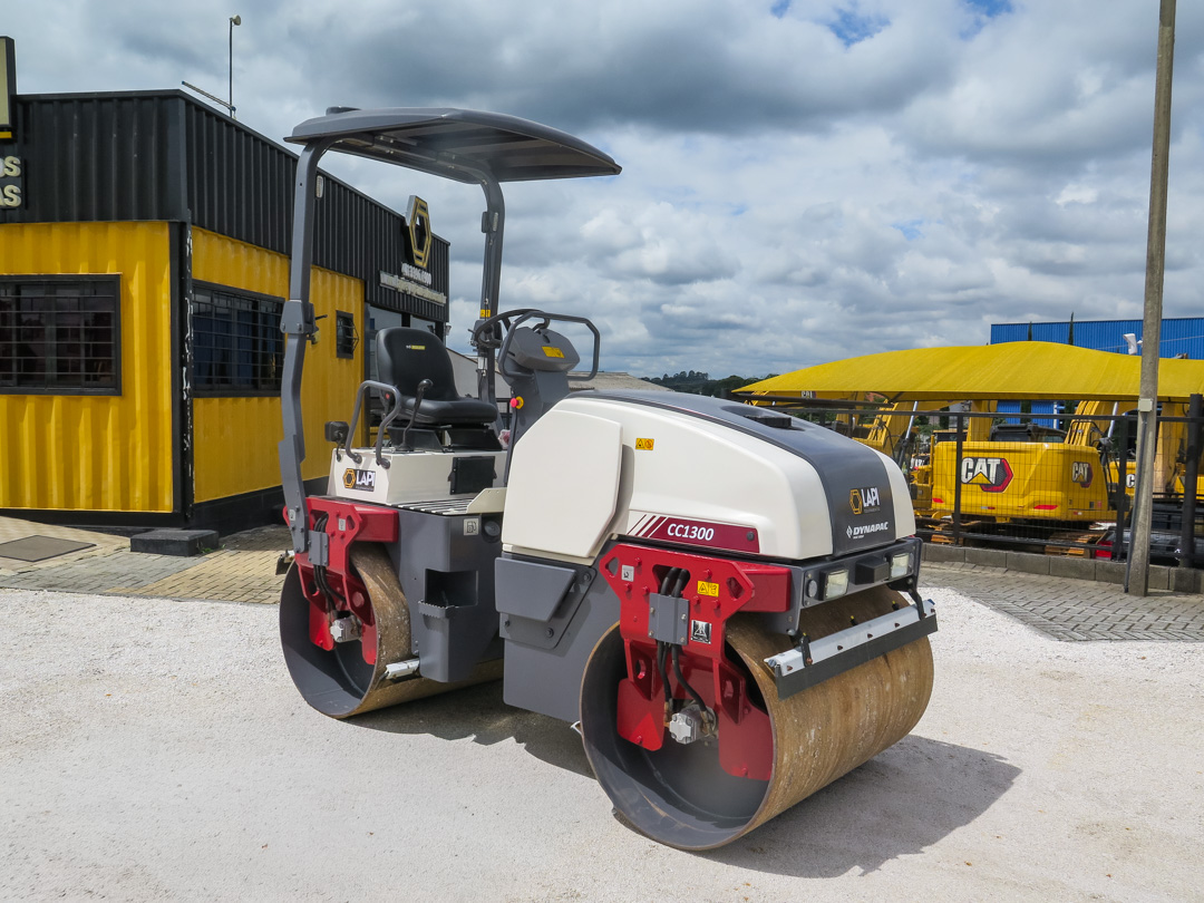 Rolo compactador Dynapac CC1300 ano 2019 com 1.400h revisado. Rolo de 4 toneladas com motor Kubota de 44hp pronto para o trabalho.